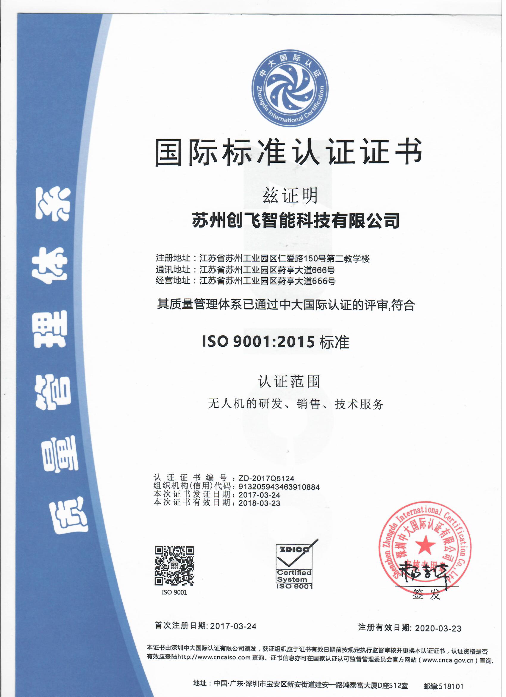 國際標準認證證書-創飛