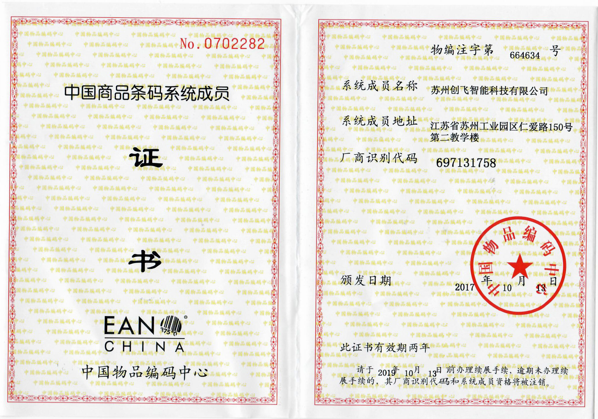 中國商品條碼系統證書-創飛