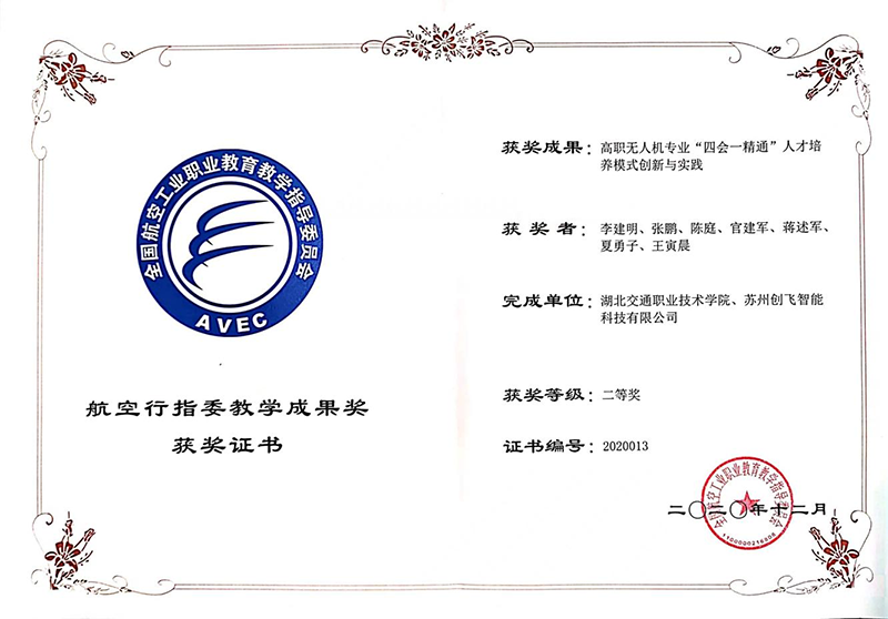 全國航空教育指導委員會教學成果二等獎